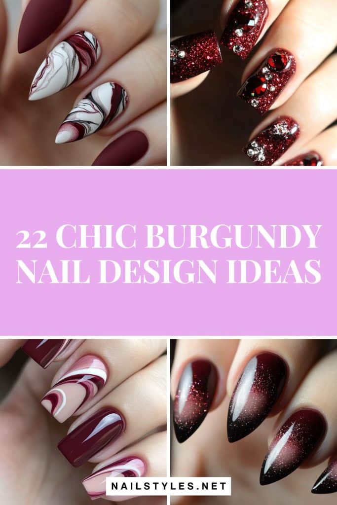 Below, we’ve rounded up 26 burgundy nail design ideas that are stylish, creative, and totally worth showing off.