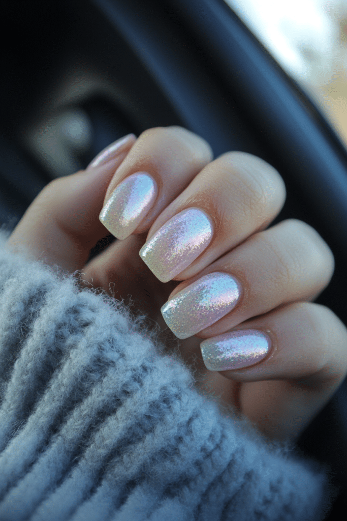 Inspired by iridescent pearls, this design features soft pinks, sky blues, and delicate lavender hues blended into a translucent, shimmery finish.