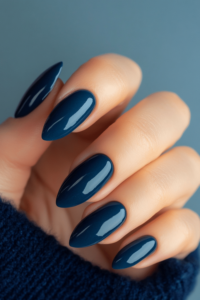 Deep navy nails with a velvety matte finish bring a modern and stylish feel.